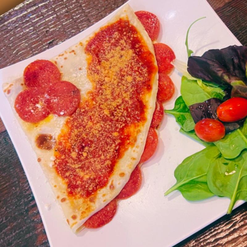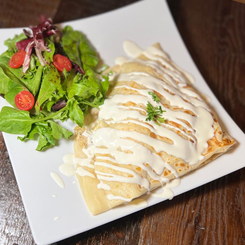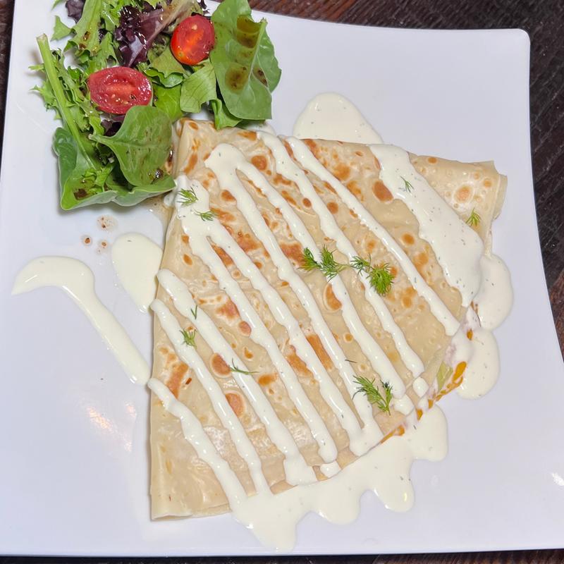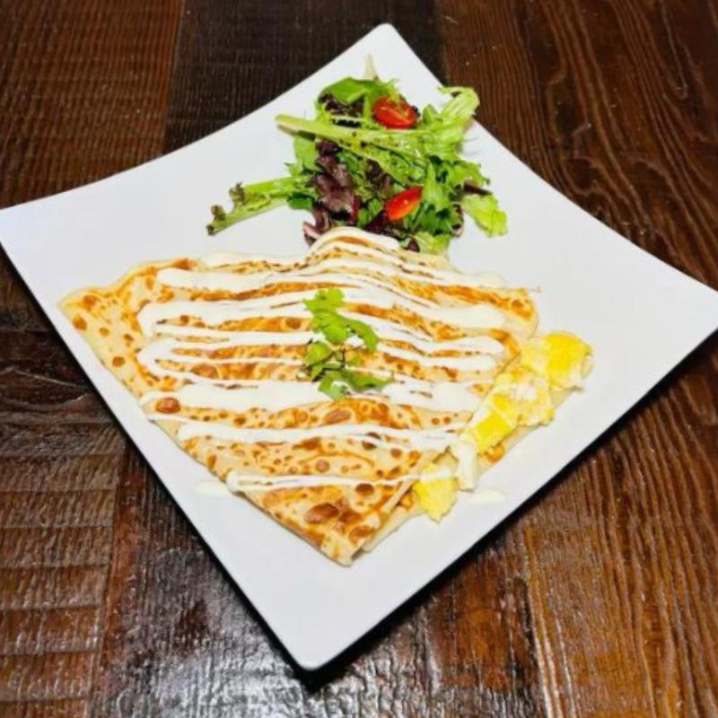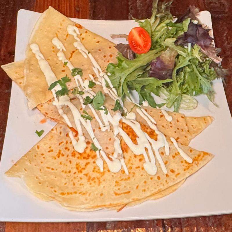 Soft crepe packed with melty mozzarella and Monterrey jack, finished with sour cream and cilantro. (Quesadilla)