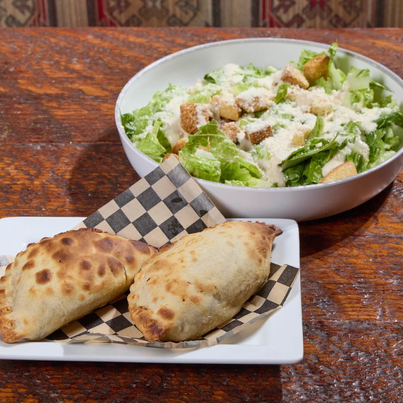 Caesar salad served with two empanadas of your choice, plus a fountain drink or regular coffee.