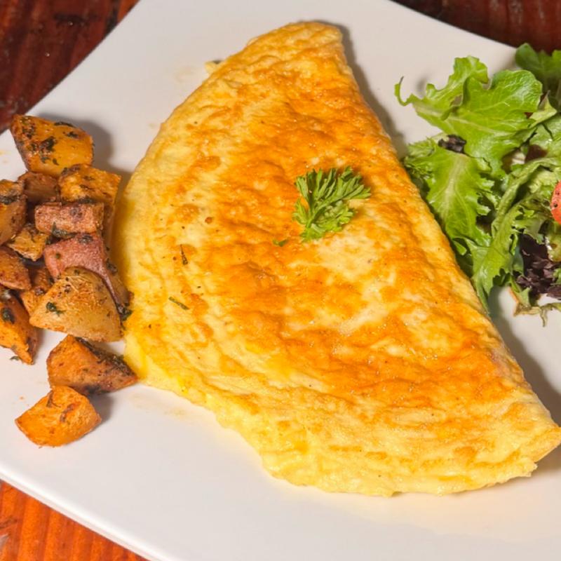 Fluffy three-egg omelette filled with cheddar and your pick of protein or vegetables.