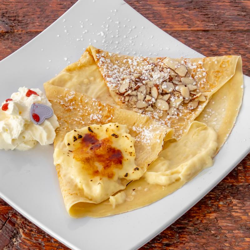 Smooth crème brûlée filling topped with crunchy almonds. Add Strawberry or Banana +$1.75
